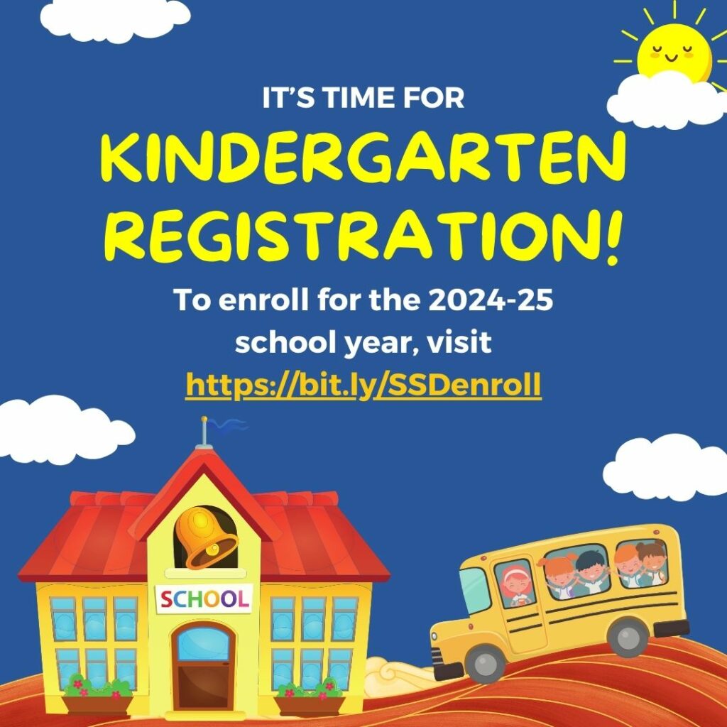 For information on enrolling your kindergartener for the upcoming school year, including online registration and elementary school boundary information, please visit our district enrollment website at bit.ly/SSDenroll.