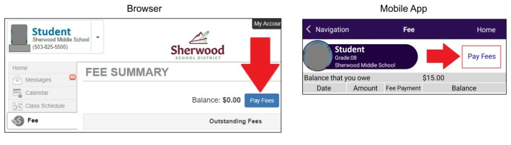 - The Sherwood School District accepts online payments for student fees in the form of credit/debit card and eCheck/ACH through ParentVUE.