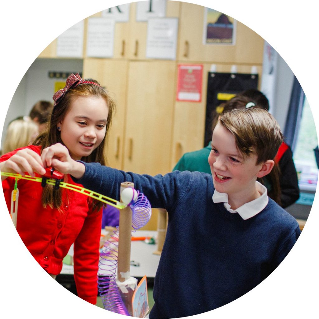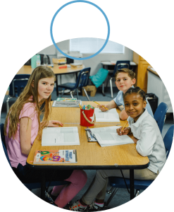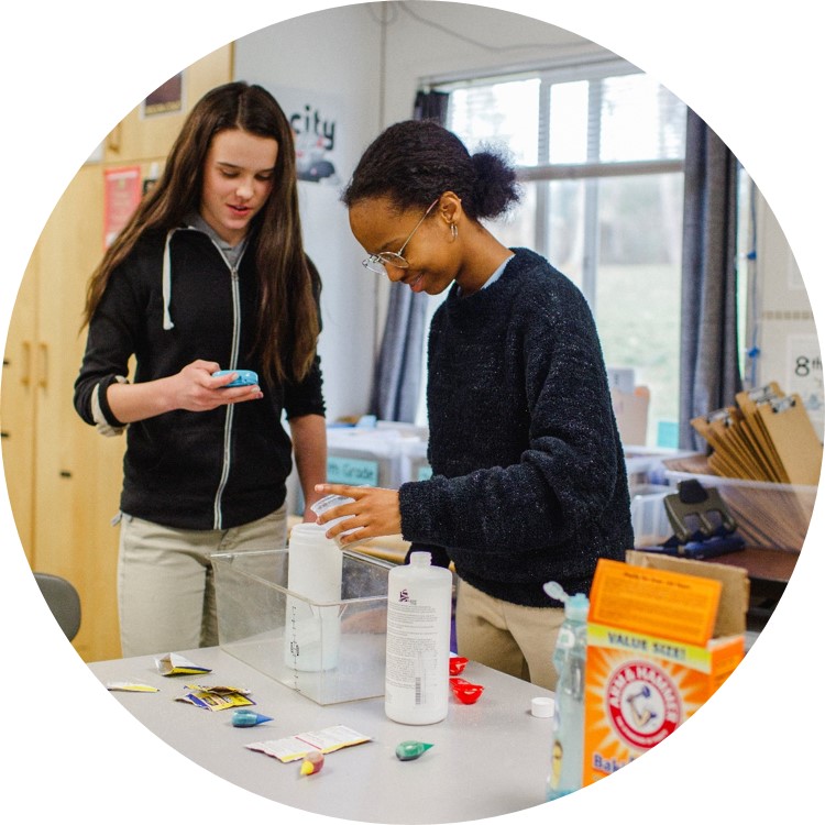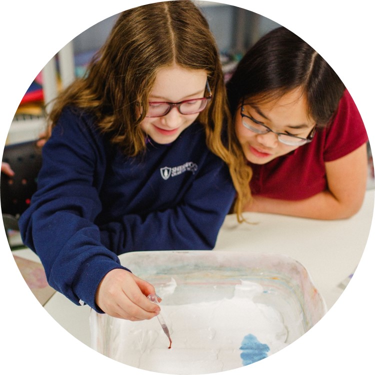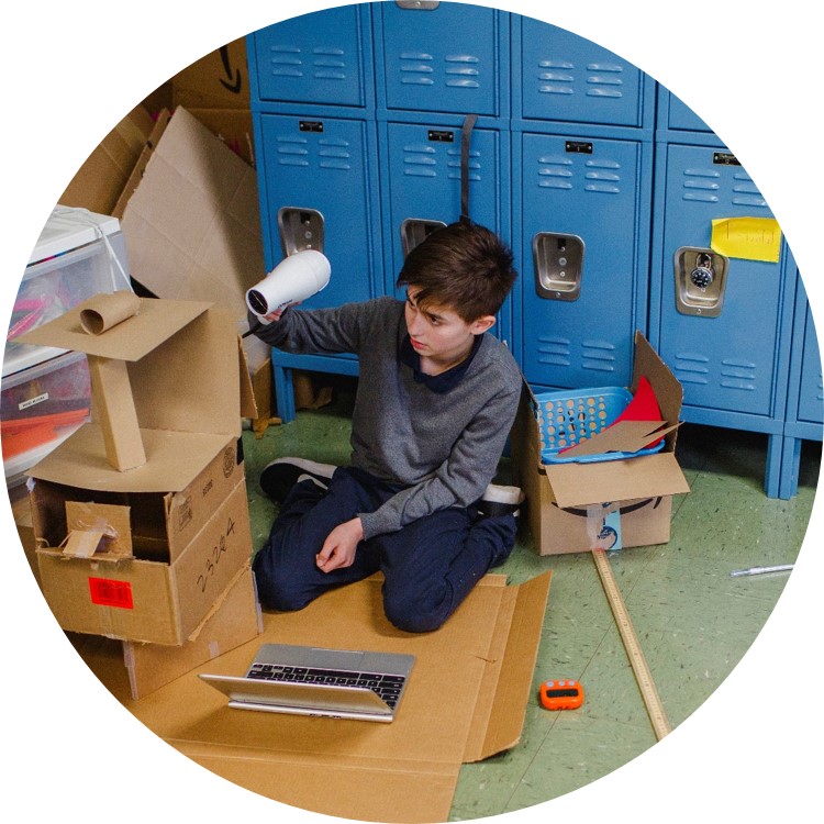 - Students actively engaging in creative, Hands-on learning