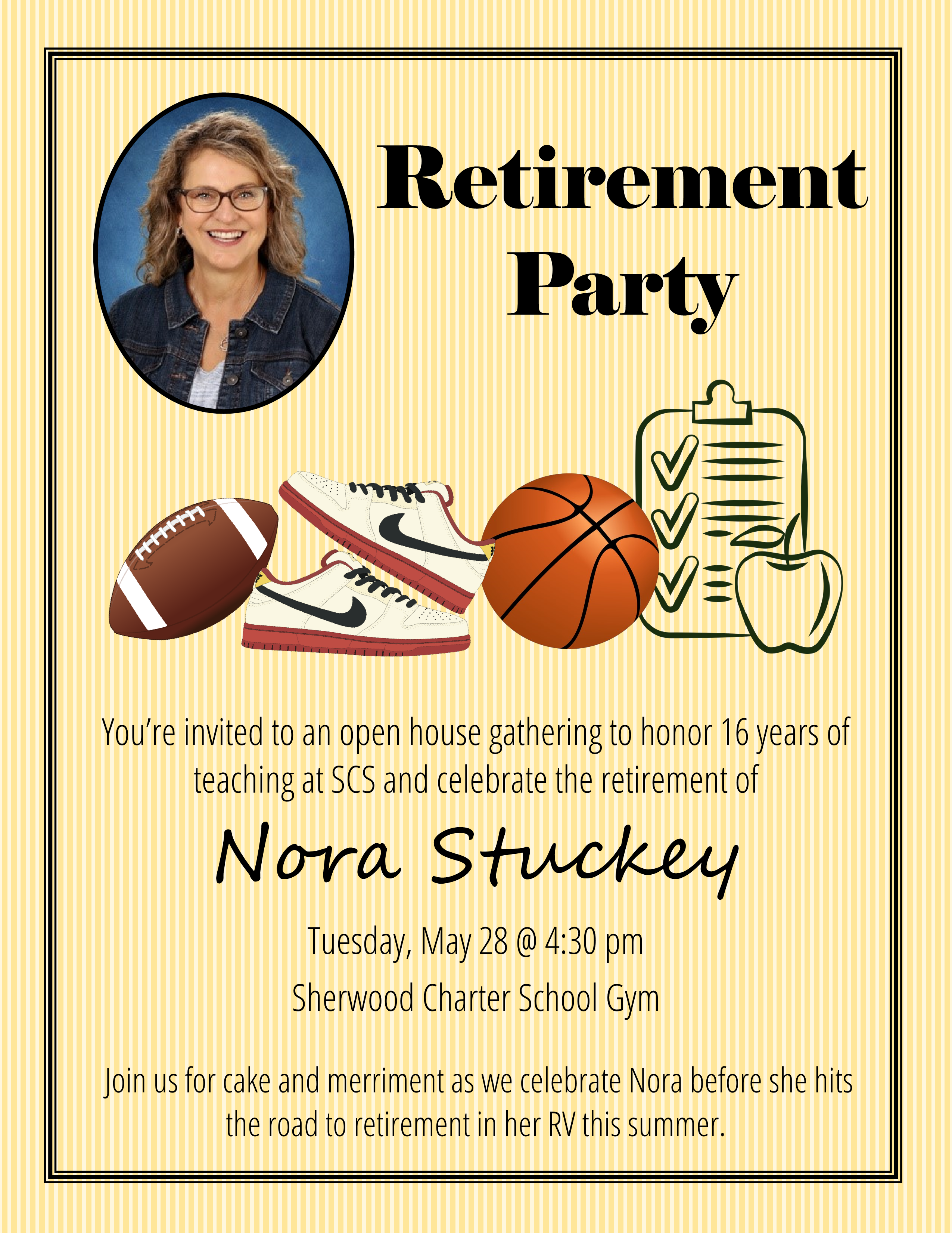 Please join us at an open house gathering to honor 16 years of teaching at SCS and celebrate the retirement of Mrs. Stuckey!