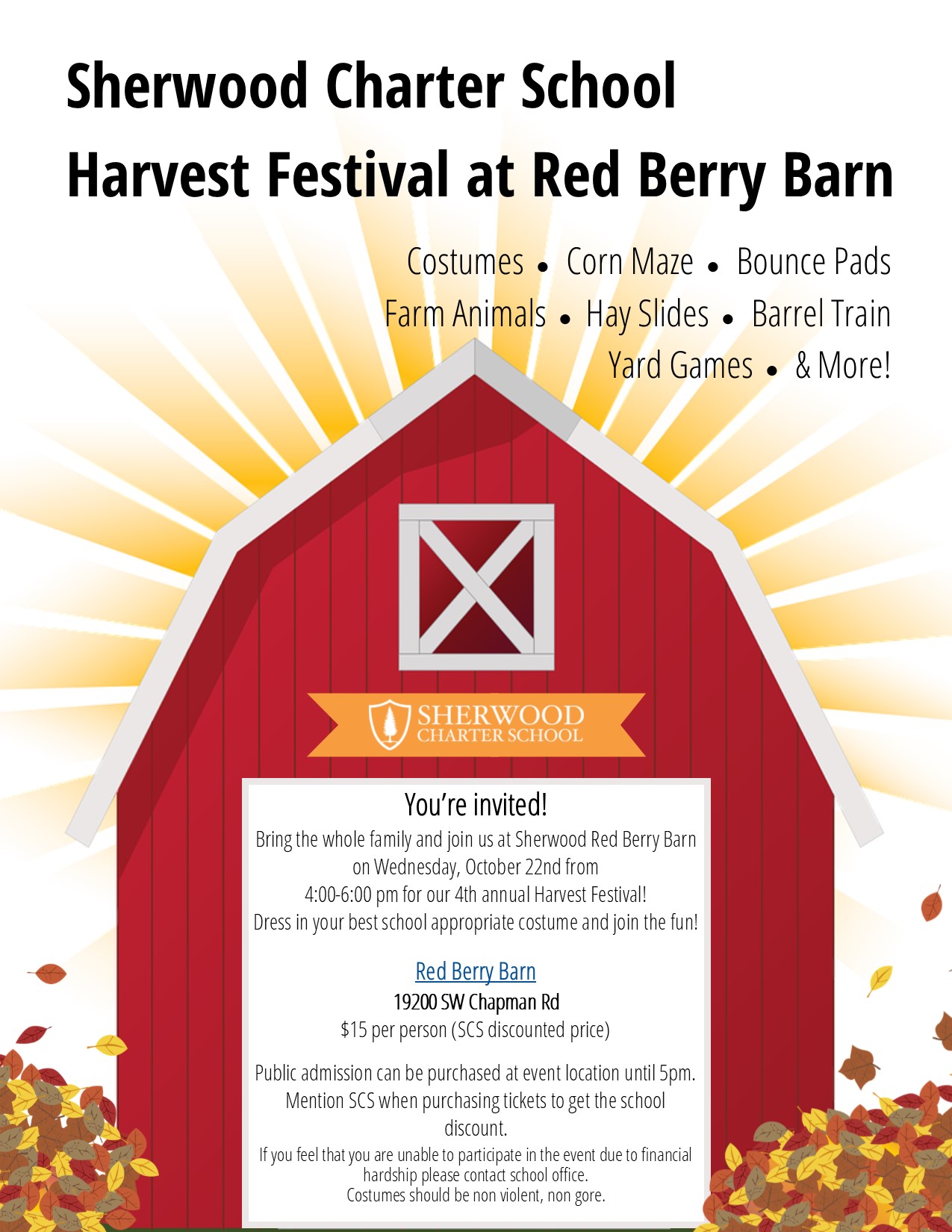 Harvest Festival- A Public Family Event- Wednesday, October 22, 2025 from 4:00 - 6:00 pm! We are excited to announce that this year we will be partnering with Sherwood Red Berry Barn this year to host our Harvest Festival off-site. Red Berry Barn admission is required for everyone to access any part of the farm grounds.... |
