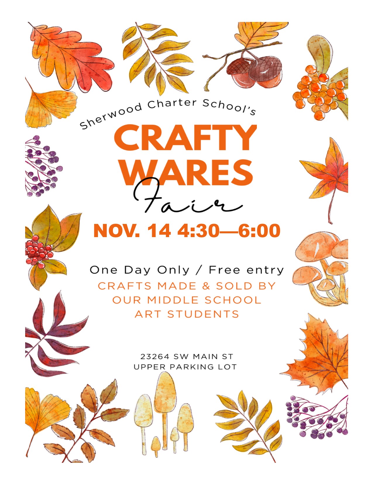 Join us for a family friendly Crafty Wares Fair! Facilitated through Sherwood Charter Schools' middle school art elective, Leadership Academy students will be gathering from 4:30 - 6pm on Friday,... |
